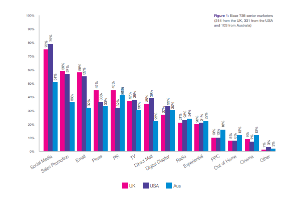而社交、公关和促销的主要渠道,只有30%的澳大利亚商人表示,他们将使用电视。
