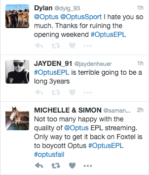 EPL在Optus上的首周末很快就被一波不满的人们在Twitter和Facebook上发帖,抱怨延迟和冻结,一些评论员指责电信公司毁了首周末。