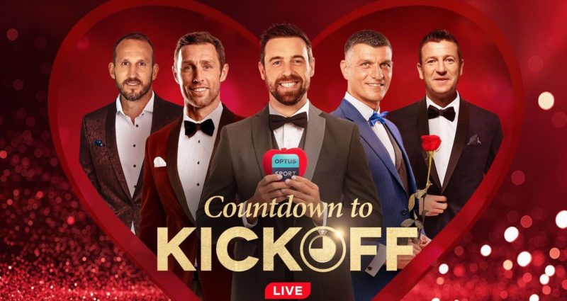 周六晚上的大型比赛将使Optus Sport Studio在情人节主题中脱颖而出,理查德·贝利斯(Richard Bayliss)和开球球队的倒计时将在他们的玫瑰仪式服装中看起来不错。