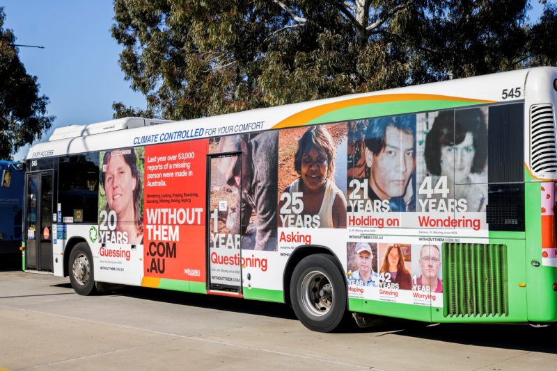 户外媒体协会已与澳大利亚联邦警察和国家失踪人员协调中心合作,在全国失踪人员周的运动中构成失踪人员。