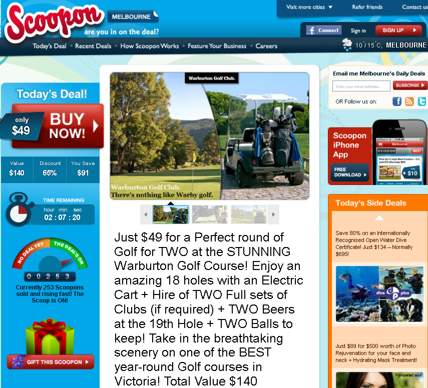 首先Scoopon仅仅是新的,他们主要网站“catchoftheday”只是被他们的新姐妹站点杠杆。他们有很多抱怨,不照顾他们的消费者,有一个日志的命令,他们有一个非常坏名声比其他人做得更好的工作或照顾他们的客户。封隔器和巴塞特买到他们是不光彩的考虑选择!