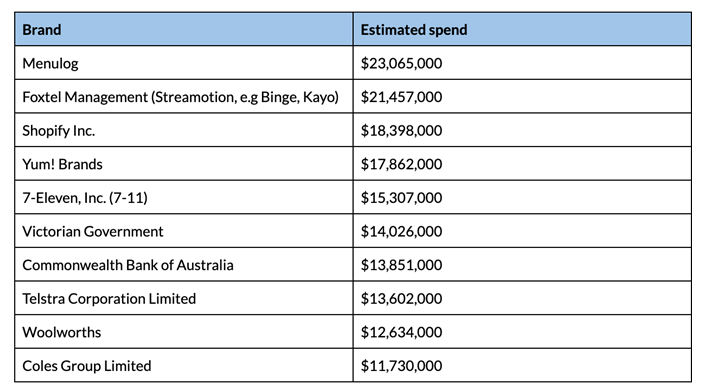 Pathmatics的十大澳大利亚品牌广告支出预算最高