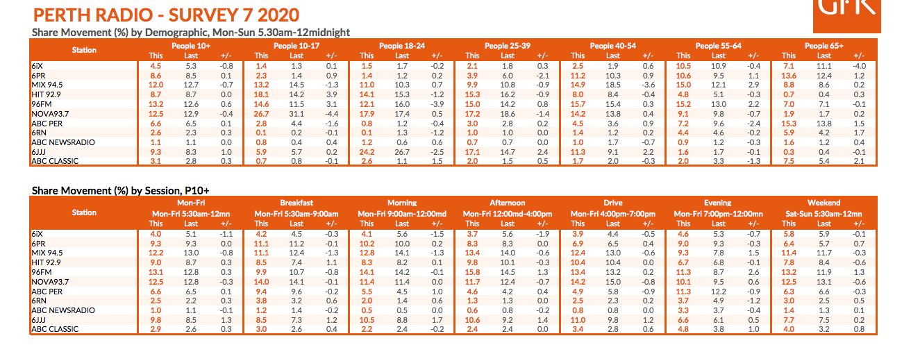 96FM从伏特鲁姆斯声称珀斯无线电评级的旅程完成,因为澳大利亚无线电网络站在2020年的第七个GFK无线电调查中总体上的13.2%的份额。