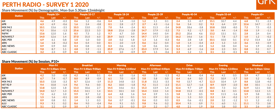 珀斯的Nova 93.7重登榜首,此前在2019年的最后一次广播收视率调查中,它被挤下了榜首.该电视台整体上升1.4个百分点,市场份额跃升至14.0%,成为市场上最受欢迎的电视台。