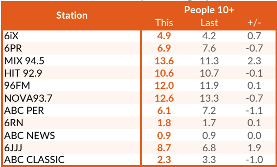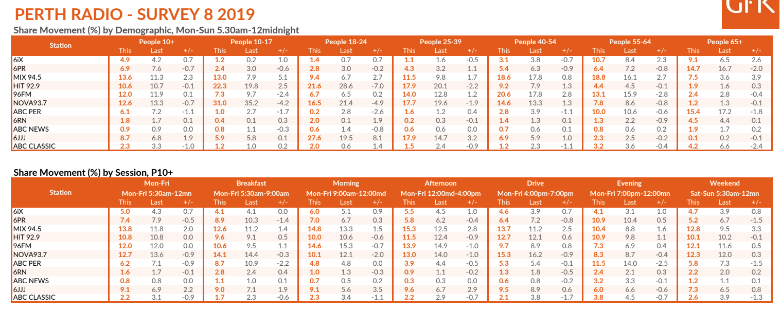 珀斯电台收视率:Mix 94.5飙升至第一名,但Nova保住了早餐和开车的位置
