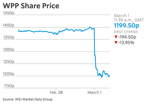 本周,世界上最大的代理控股公司WPP在短短几个小时内就损失了约15%的市值。该股被暂停交易。后来它又恢复了一些价值。