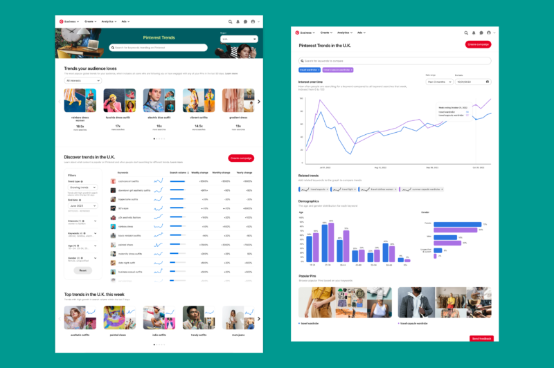 - 你的用户喜欢的趋势- Pinterest Trends主页上的这个小工具可以让广告商看到在过去90天里他们的忠实用户和追随者的流行趋势。