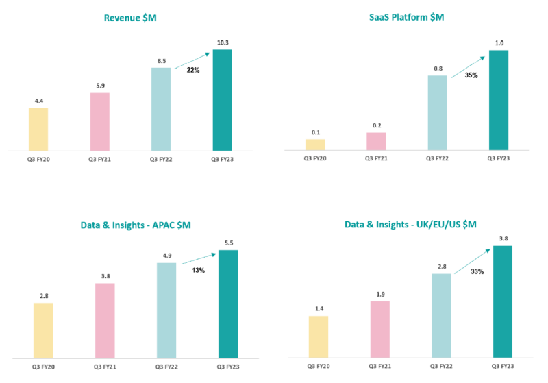 数据与见解和SaaS平台业务,Pureprofile交付1030万美元的季度收入持续业务,与100万美元的EBITDA排除重大项目和EBITDA利润率10%。