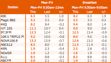 ABC 891在AM评级中仍位居榜首,上涨了0.9至11.4%,而Fiveaa则下滑了0.5至10.1%