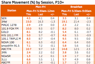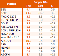 该电台仍领先于ABC774,后者的份额为10.5%,较上次调查上升了1个百分点。