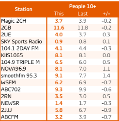 WSFM是最大的输家,整体下降了0.7个百分点,观众份额仅为6.2%,仅领先于2DayFM,后者最近的观众增长抵消了0.3个百分点,跌至4.1%。