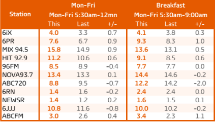 在最新的广播收视率调查中,Mix 94.5保持了珀斯最受欢迎电台的地位,而竞争对手Nova 93.7则很难有任何增长。