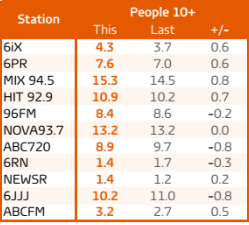 访谈电台6PR的早餐节目由于人们收听选举报道而上升了1个百分点,达到9.3%的份额,而ABC720的份额则急剧下降2个百分点,至12.2%。