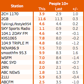 SmoothFM周一至周日的观众份额增加了1.6个百分点,达到9.9%,WSFM的份额下降了1.4个百分点,至7%,使澳大利亚广播电视网的节目在总体上排名第四。