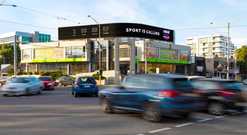 体育零售商Rebel在墨尔本周边的数字广告牌上倒计时AFL的回归。