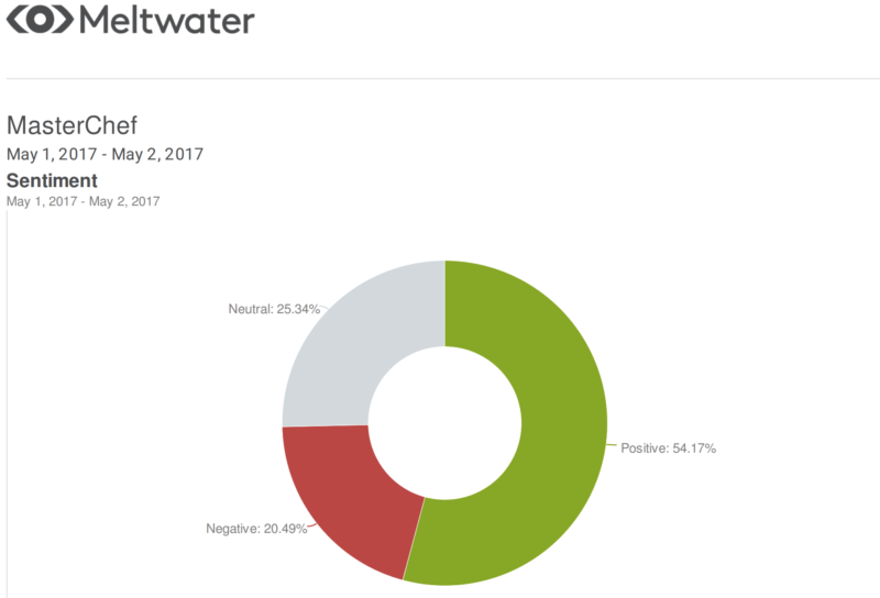 根据melwater对媒体情报的监测,围绕Masterchef的讨论大体上是积极的。