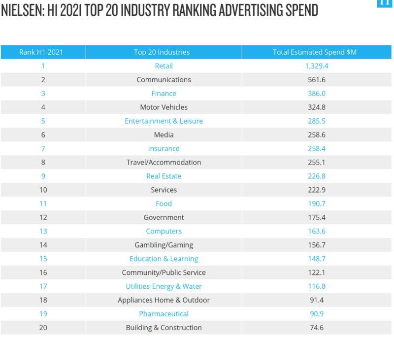 尼尔森广告媒体投资英特尔发布了最新的数据在2021年上半年的主要媒体在澳大利亚。