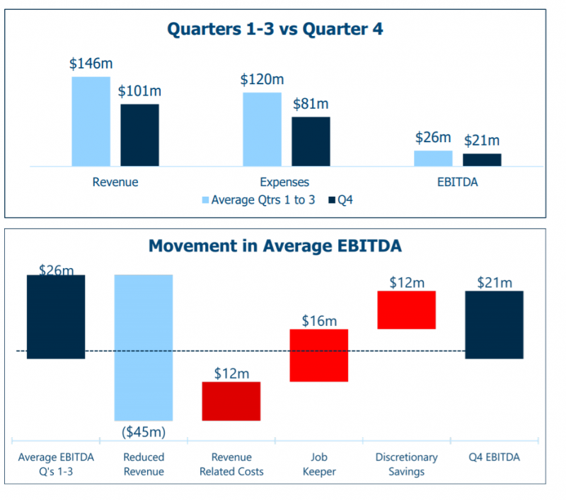 在所有四个季度,SCA报道积极的息税前利润(利息、税项、折旧和摊销),进入最后一个图的108.2美元——从FY19下跌近34%。