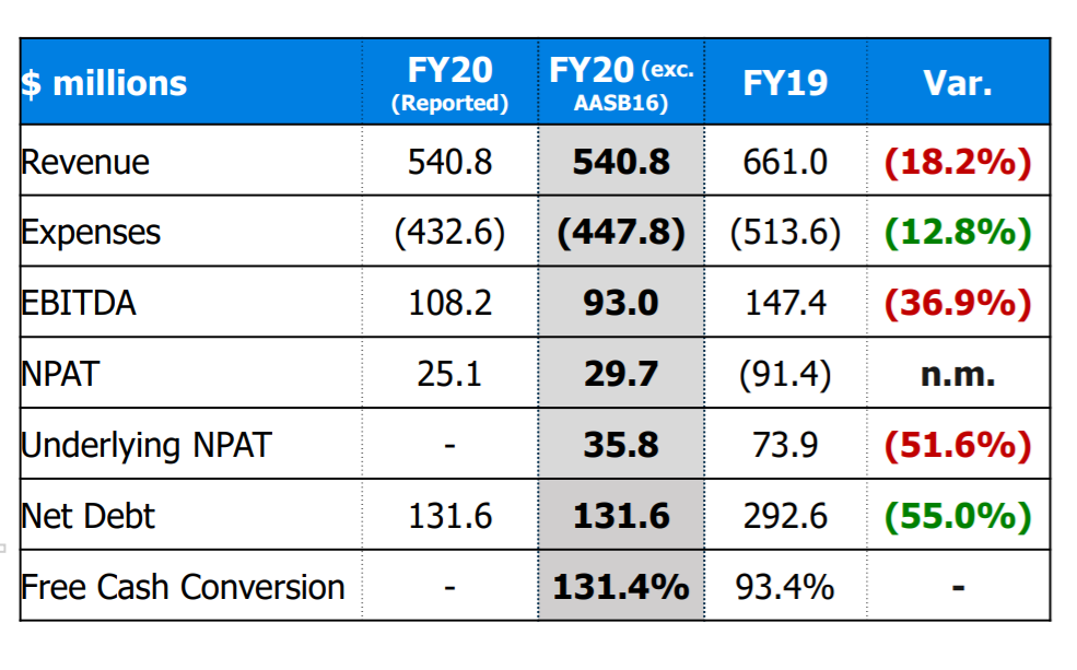 业务还报道,尽管利润不包括重大项目34.1美元和35.8美元的净利润,削减成本措施和业务说股本提高把它忘在FY20更健康的资产负债表。