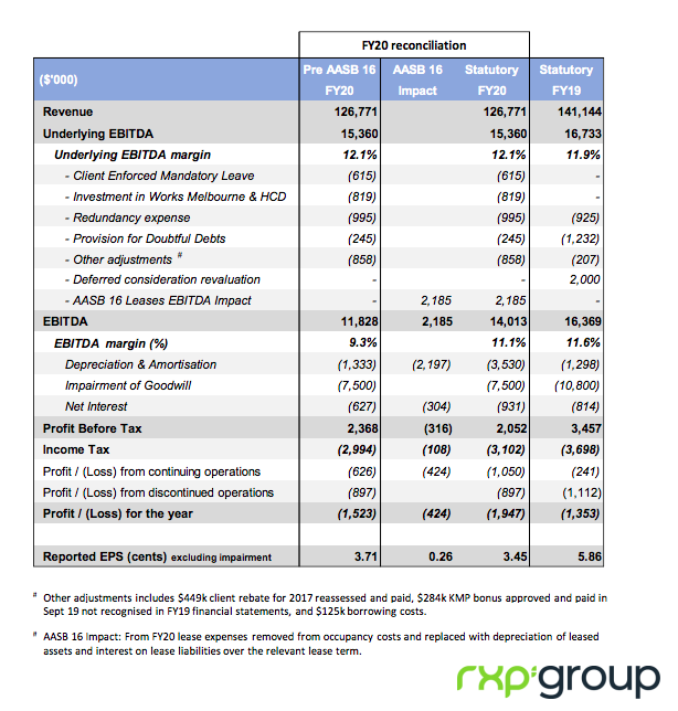 该市场在上半年经历了一个“重大政府项目”的推迟,该项目已被搁置到2021财年第一季度。RXP在墨尔本的一个重要客户也在上半年实施了10天的强制休假,RXP表示,这对其业务产生了61.5万美元的影响。