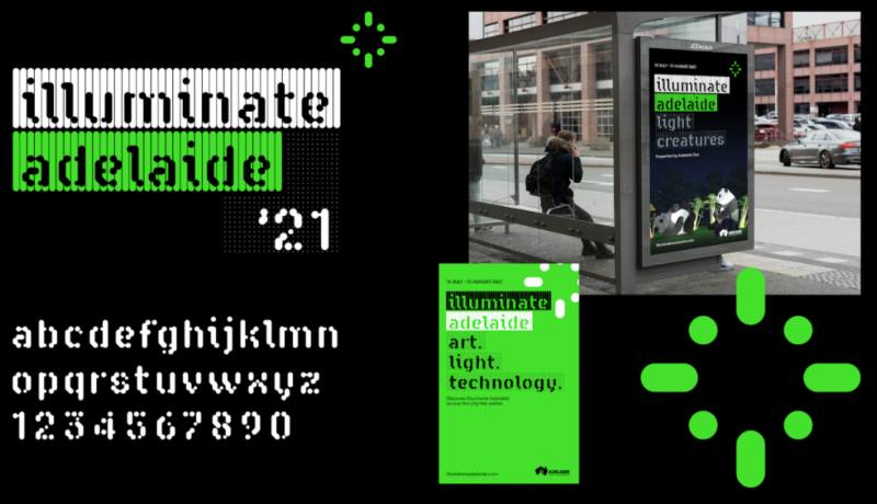 “该设计使“阿德莱德照明”能够灵活和填补他们在网上、印刷品上、街道上,甚至可能穿过一个著名的建筑façade或两个面临的空间和交流挑战。”