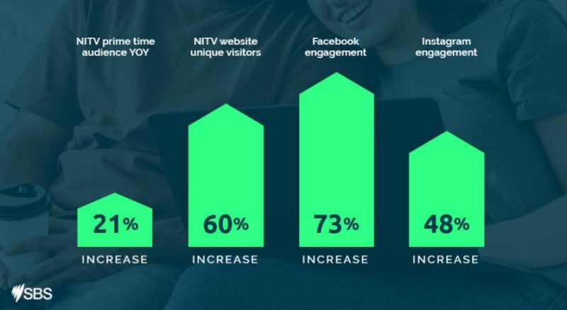 在过去12个月里,NITV的观众数量也有所上升,NITV的黄金时段线性观众增长了21%,数字平台的参与度不断增长,SBS OnDemand上的本土内容消费增长了27%,包括NITV的独特节目。