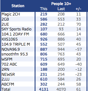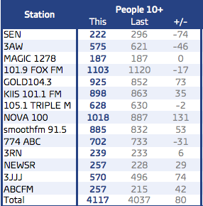 难怪Triple J做得这么好,而这些商业电台的观众如此之低——大多数不到总人口的10%