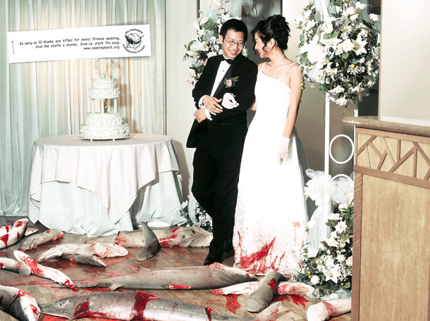 这些反鱼翅的图片广告由盛世长城新加坡公司(Saatchi & Saatchi Singapore)创作,旨在终结中国婚礼上供应鱼翅汤的传统。