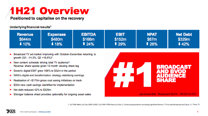 首席执行官还指出了生产单位七个工作室的优惠,并表示业务正在考虑其针对TX澳大利亚的选择,它与九个并称为非核心资产。