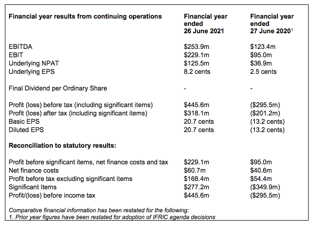 基础集团EBITDA为2.539亿美元,增长105%,EBIT为2.271亿美元,增长141%。Seven还公布了2亿美元的成本和现金节省,运营成本降低了7.5%。股息仍然暂停发放。