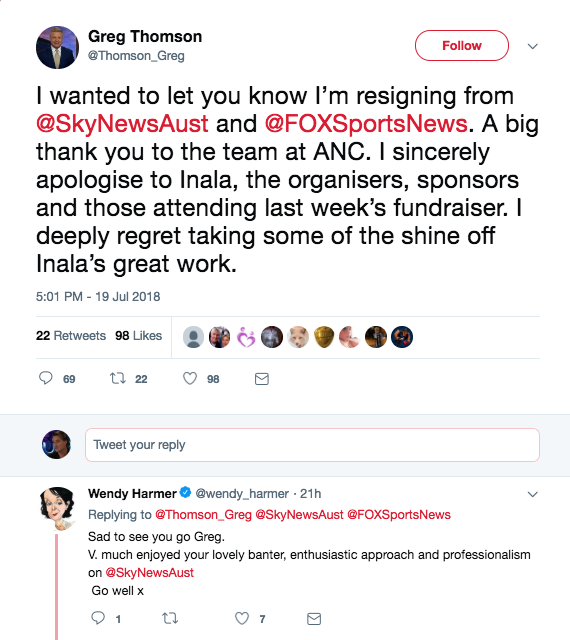 在悉尼电台主持人雷•哈德利(Ray Hadley)周一的咆哮之后,汤姆森先是在媒体报道中挑衅,但周四晚上他通过推特宣布了辞职。
