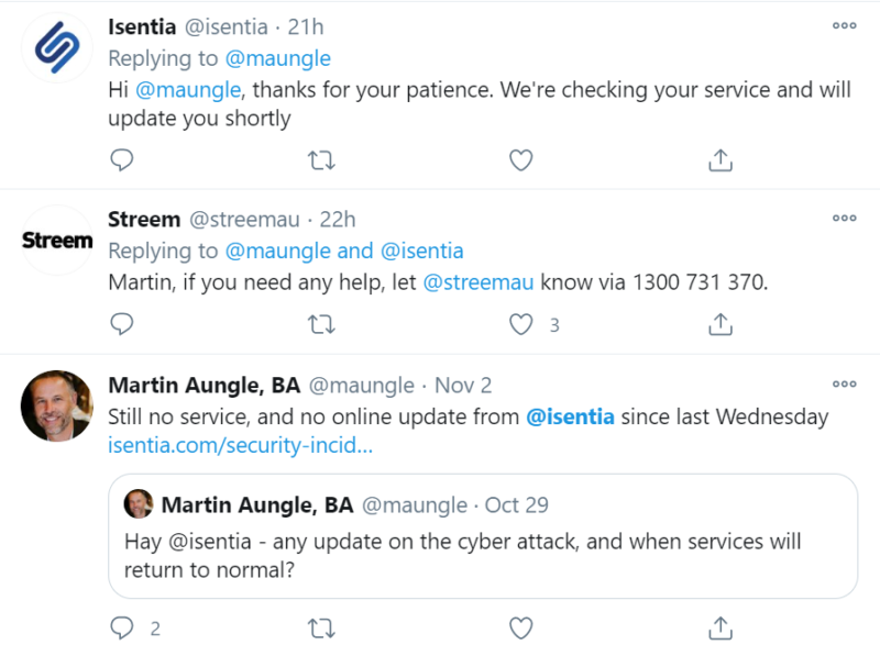 许多客户在今天对缺乏攻击缺乏沟通的更新之前表示令人沮丧,但蒙布拉建议该公司在更新ASX之前联系客户在其情况下。