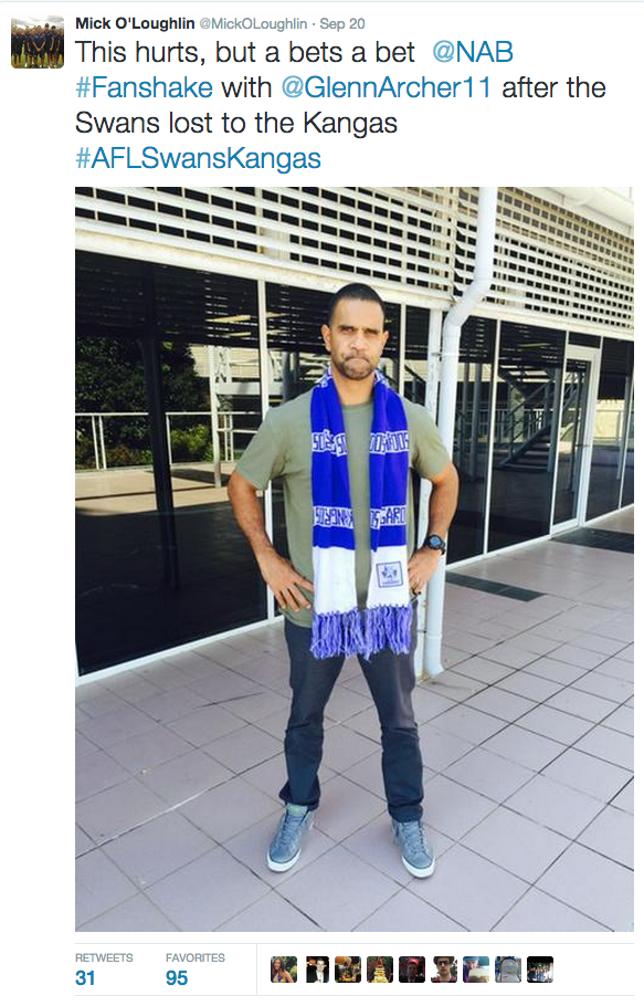 澳大利亚国民银行,AFL的赞助商之一,使用标签# haveaniceday导致游戏和雇佣AFL“传说”惊喜无足轻重的球迷对社会渠道然后共享照片。