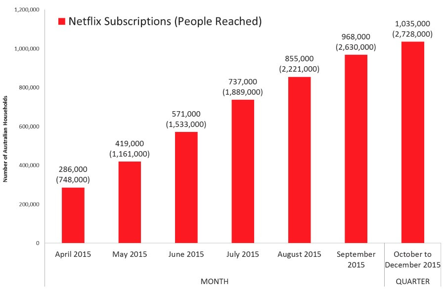 同时SVOD继续增长,尽管速度放缓。转眼间,斯坦继续下降为市场提供的付费订阅而Netflix取得达到超过2.7澳大利亚人在不到12个月的操作——至少根据罗伊摩根的数字。