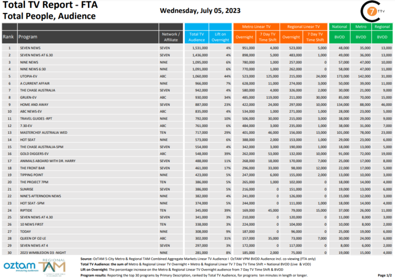 9网络赢得了晚上总体份额为42.6%,和36.3%的主要通道。