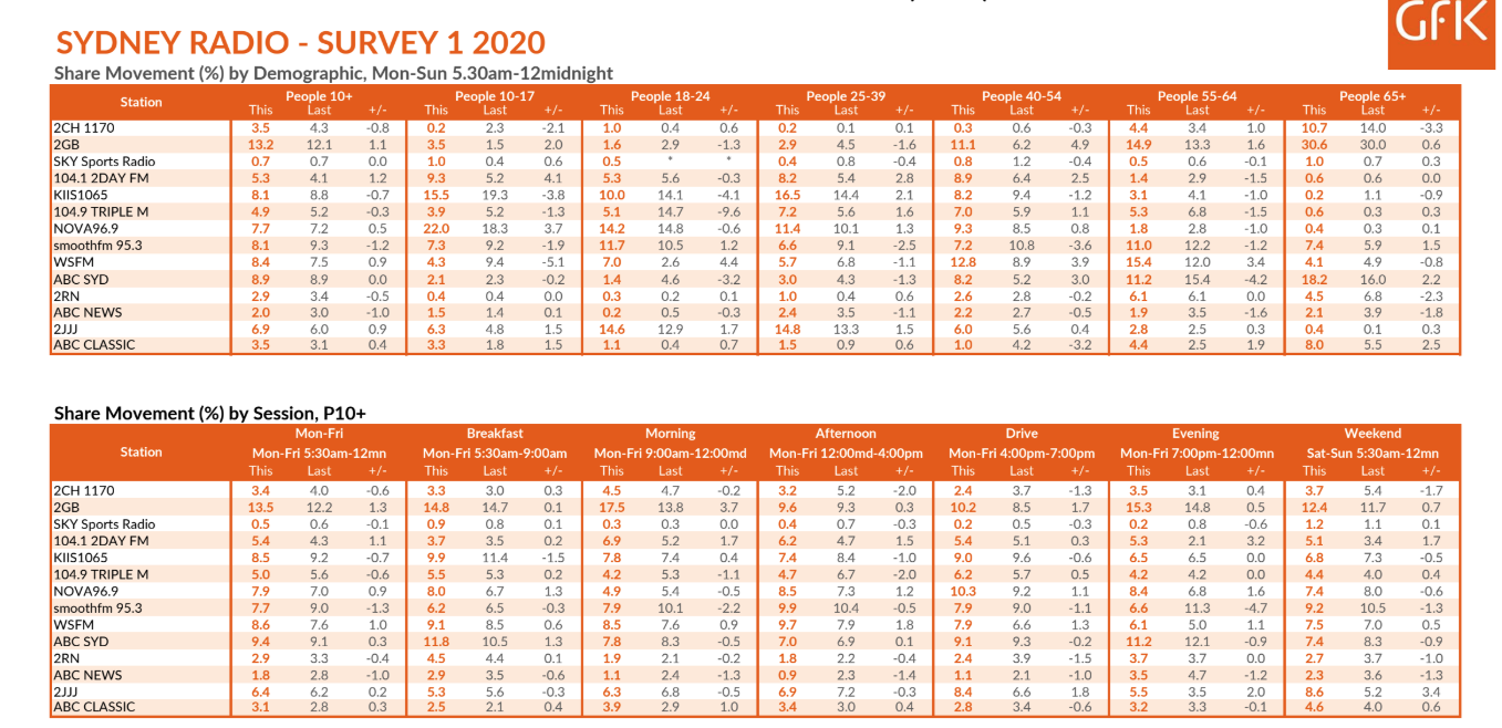 2GB还位于悉尼的整个广播市场,份额为13.2%,增长1.1分。