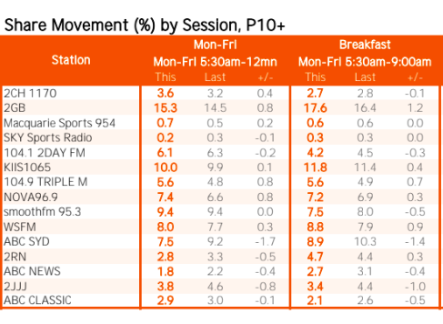 总的来说,在10岁及以上的人群中,2GB在悉尼广播大战中胜出,从上次调查的14.5%上升到14.8%。
