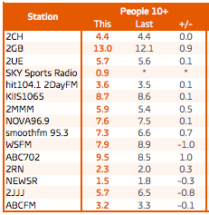 对谈电台Radio 2GB今年开局强劲,以13.0个市场份额(增长0.9%)保持了整体第一的位置。早间节目主持人艾伦·琼斯增长2.0个市场份额,至16.8个市场份额,早间节目主持人雷·哈德利下滑2.3个市场份额,至14.2个市场份额。