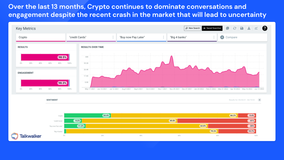 在今年的第一季度,与BNPL,银行和信用卡的总和相比,有关加密货币的帖子和讨论近9次。