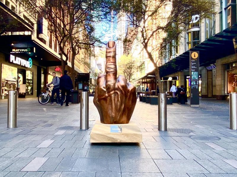 在今年晚些时候电信公司将手指送达2020带着手势绕过悉尼CBD的手势的青铜雕像。激活要求澳大利亚人“夺回他们的力量,并要求2020他妈的”。