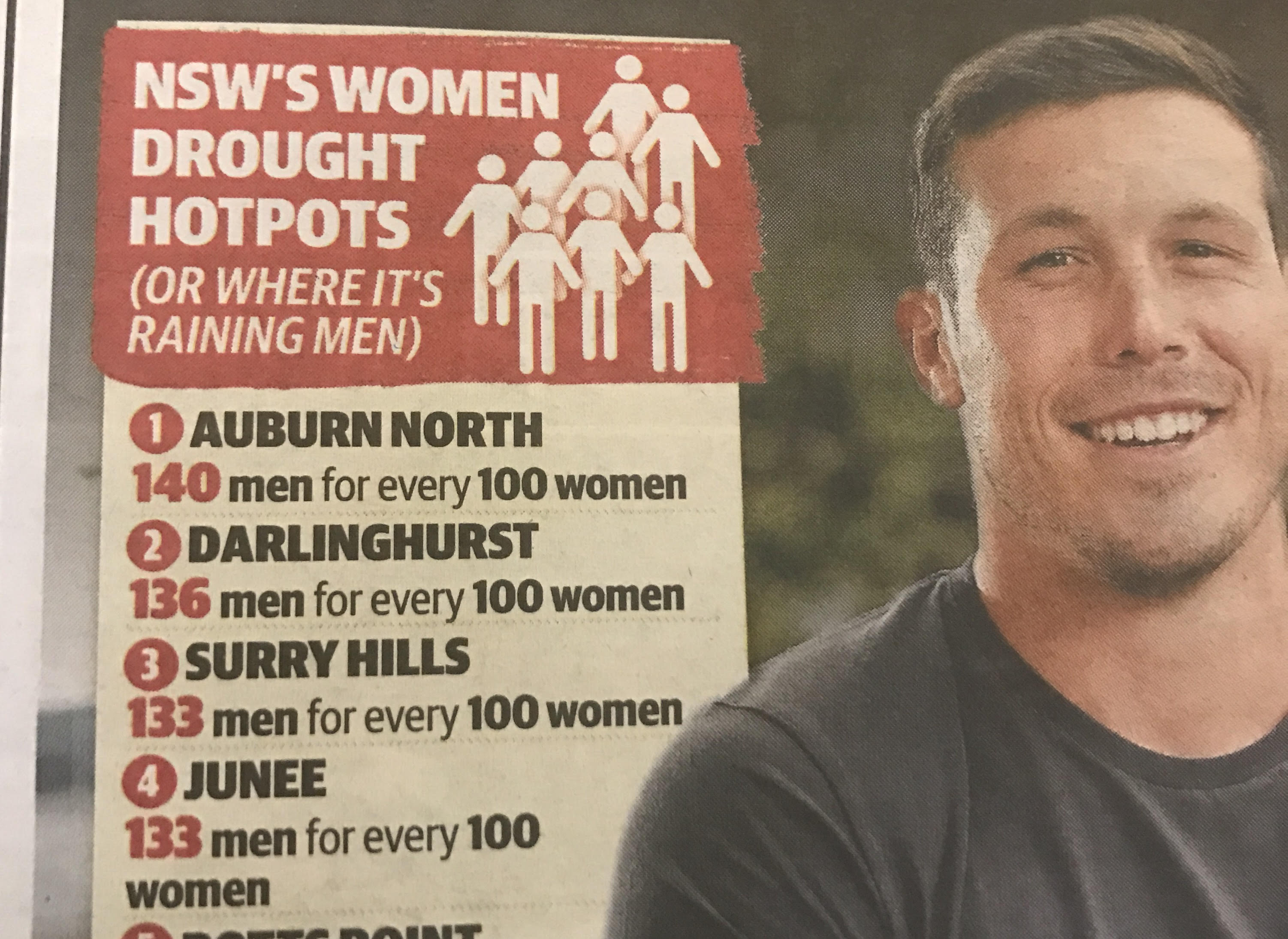 尽管如此,总有第四个选择,朱尼(Junee),每个女人都有133个男人。当然,那是Junee惩教中心的所在地。