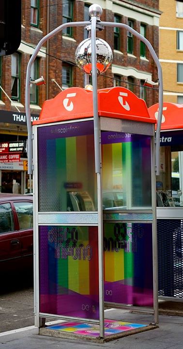 上周,悉尼中央商务区、纽敦国王街和达灵赫斯特牛津街的电话亭都被改造成了迪斯科电话亭——镜子球、烟雾机、激光,甚至还有一首“抽动的圣歌”:1976年发行的《迪斯科地狱》。