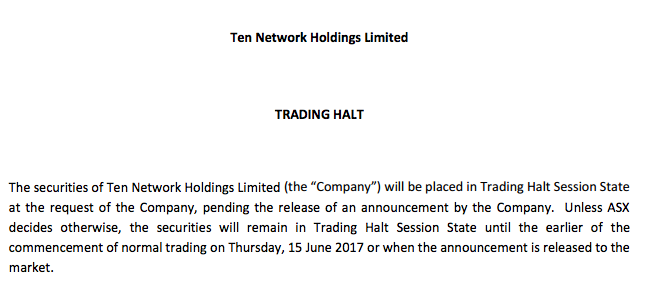 经济上令人困扰的电视广播公司十大网络已经在ASX上进入交易停止。