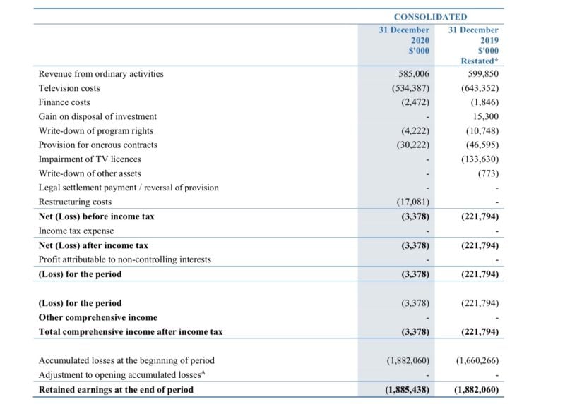 ViacomCBS-owned网络10(10网络控股)报告了一个法定损失340万美元的税后2020日历年,包括重要的项目,根据其财务报告与澳大利亚证券和投资委员会提出。