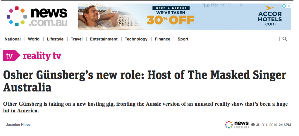 News.com.au最近宣布了一个激动人心的消息:谁将主持10的最新真人秀节目《蒙面歌手》,似乎不是别人,正是“其他人Günsberg”。