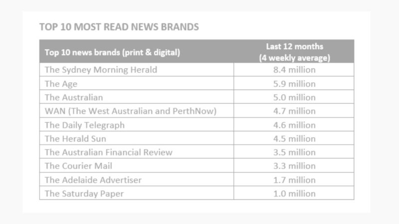 最读的十大新闻品牌:Roy Morgan for Thinknewsbrands
