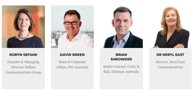 加入该小组的是Sefiani通信集团的创始人和董事总经理Robyn Sefiani;荷兰国际集团澳大利亚公司事务主管大卫·布林;埃德尔曼澳大利亚公司(Edelman Australia)危机与风险高级顾问;以及尼里尔·伊斯特通讯主任尼里尔·伊斯特博士。