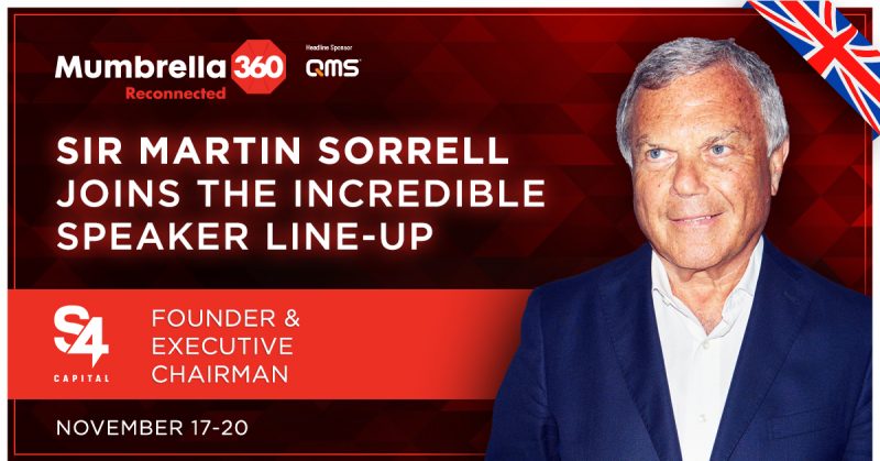 爵士(Sir Martin Sorrell)也加入了排队的Mumbrella360:重新连接时,参加一个备受期待的炉边谈话关于S4资本和行业的未来之路。门票事件,发生11月17日在这里。
