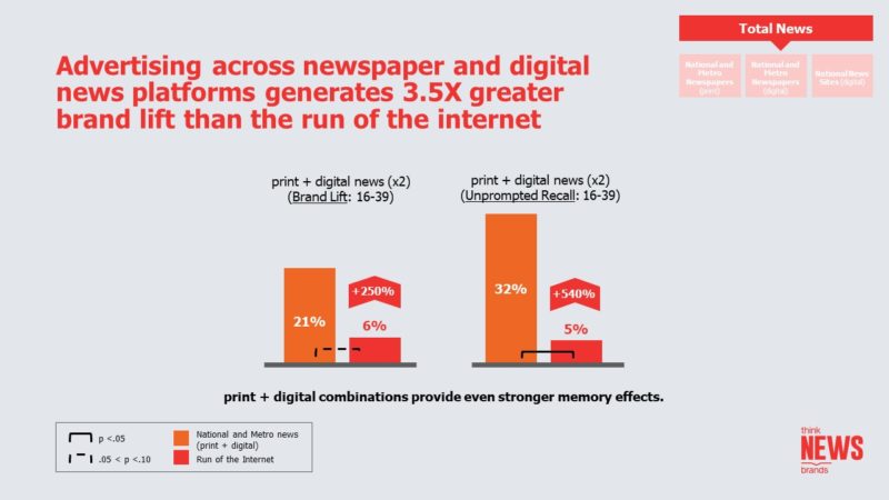 Thinknewsbrands的地标研究发现新闻旁边的广告有更高的召回