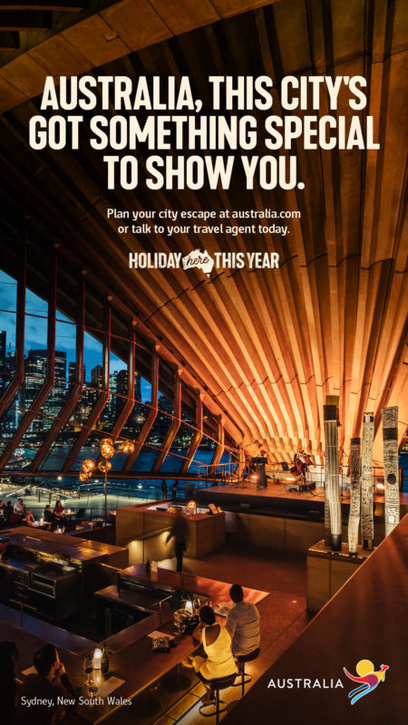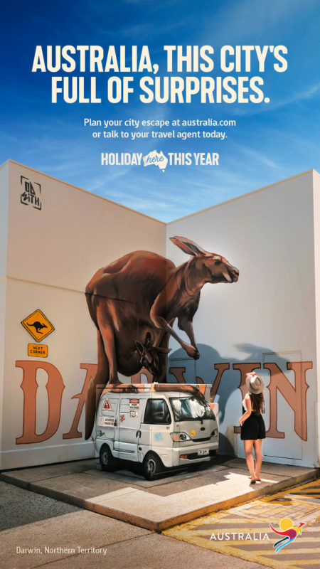 “逃离城市”(City Escapes)活动正在电视、纸媒、网络、社交媒体、内容合作、搜索、广播、电影院和户外活动上展开。该活动的主要合作伙伴是澳航假日、万事达卡、Ticketek和Trip.com Group。澳大利亚旅游局新冠肺炎旅游门户网站仍在运营,为消费者提供最新的旅游建议和度假灵感。